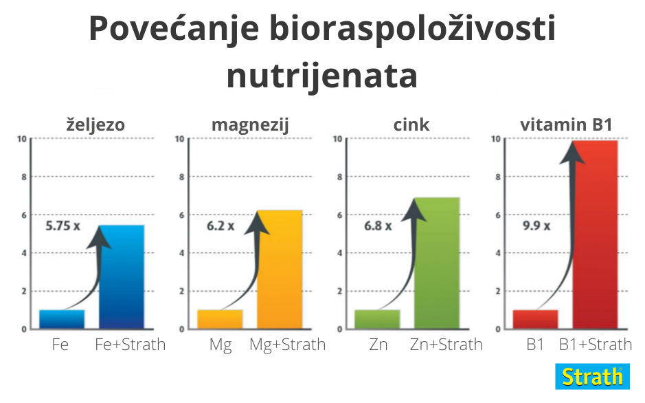- Istraživanja su pokazala kako se uzimanjem Stratha povećava apsorpcija nutrijenata iz hrane i to željeza, magnezija, cinka i vitamina B1.
